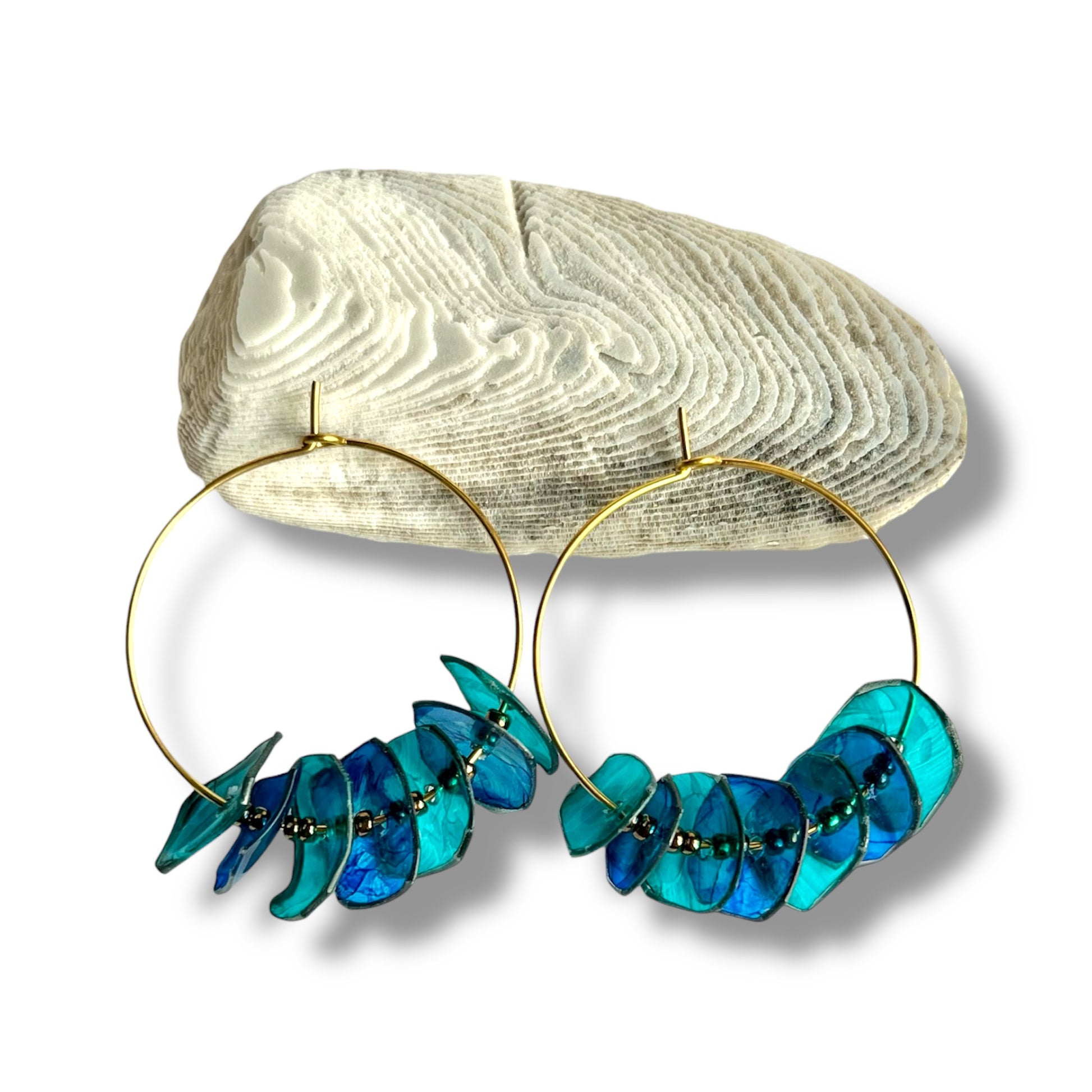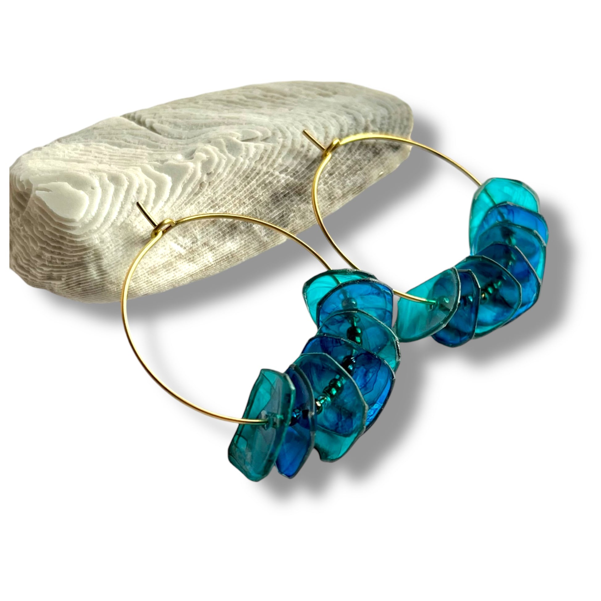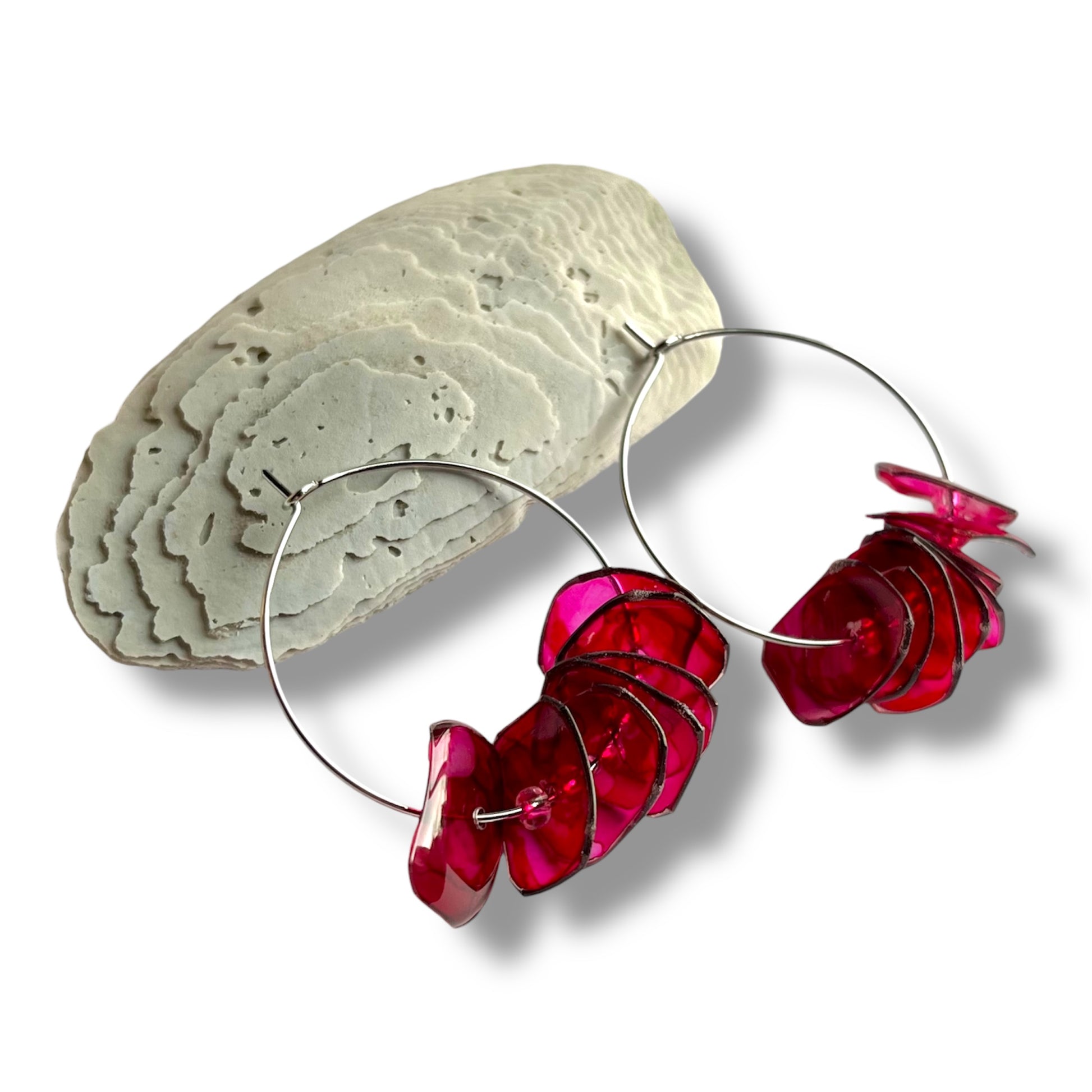 Découpées dans du plastique recyclé et montées sur des anneaux fins, Les Créoles jouent avec la lumière, la couleur et le mouvement. Elles sont légères, pleines de caractère et surtout… impossibles à copier.