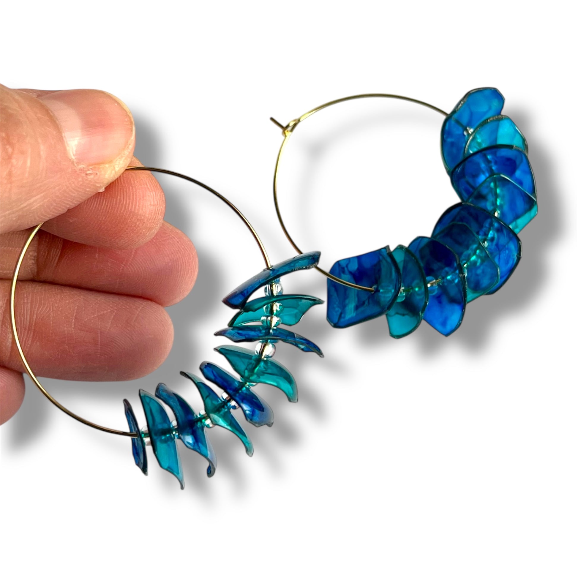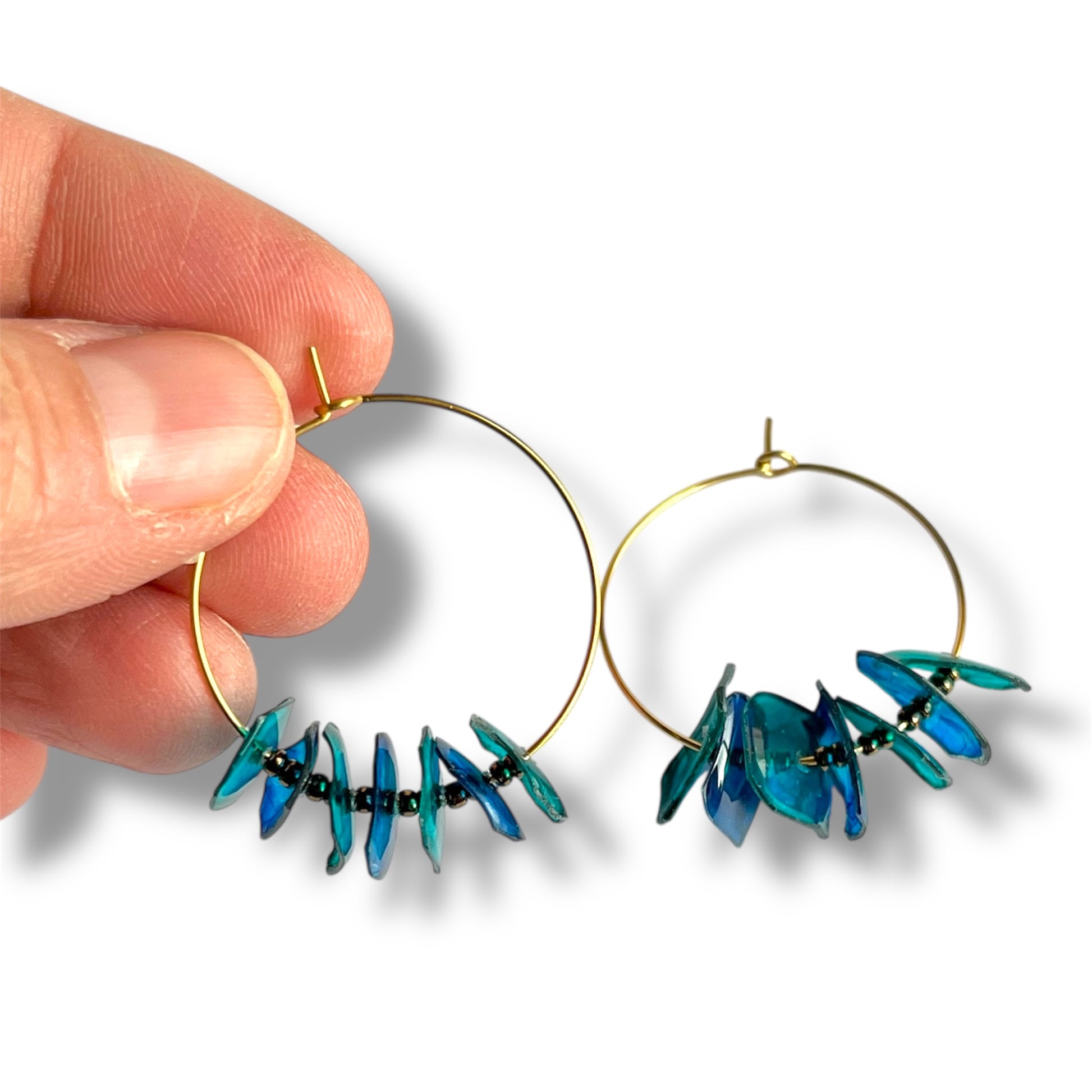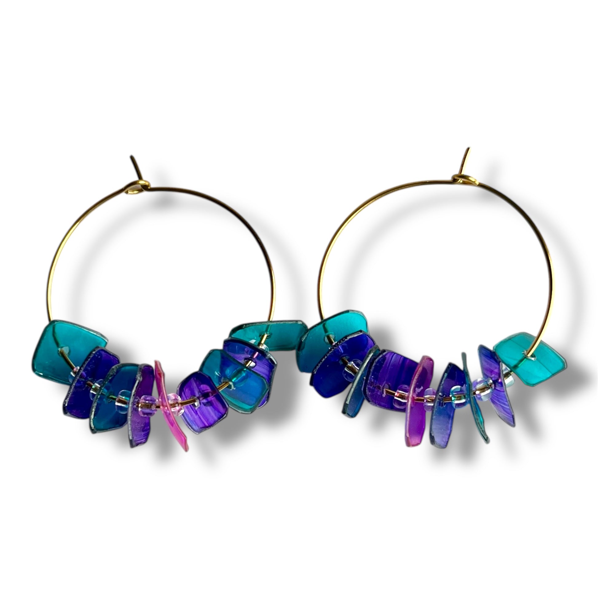 Découpées dans du plastique recyclé et montées sur des anneaux fins, Les Créoles jouent avec la lumière, la couleur et le mouvement. Elles sont légères, pleines de caractère et surtout… impossibles à copier.